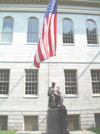 Harvard Yard – under the statue of John Harvard. Harvard was founded in 1636. Harvard Medical School was introduced in 1782.